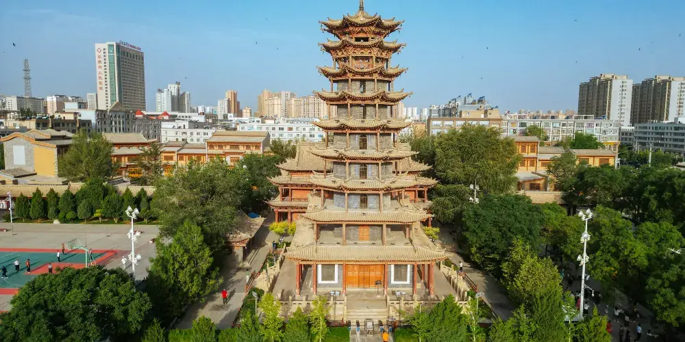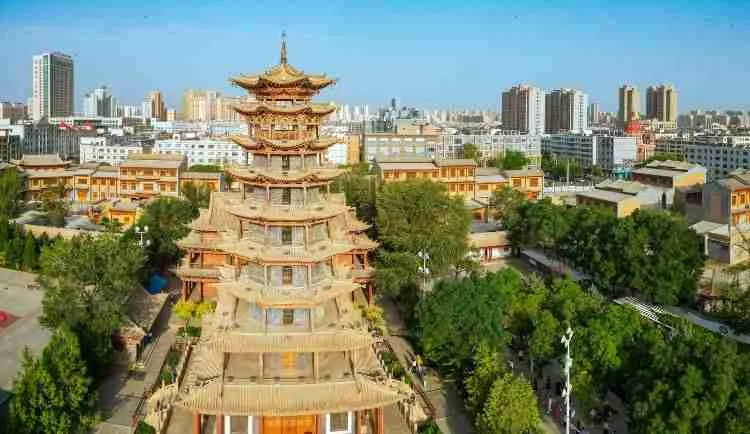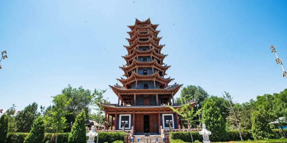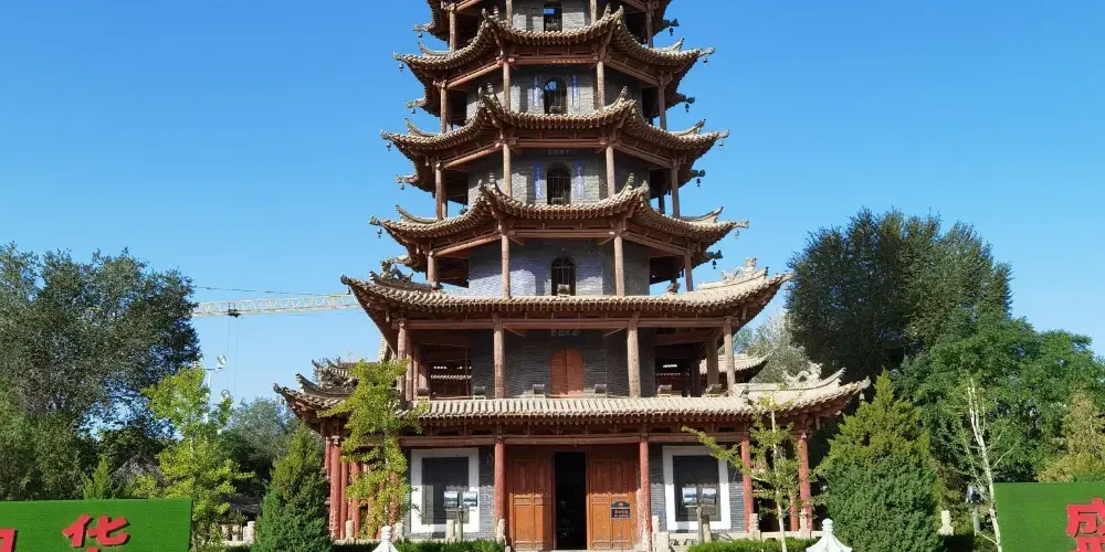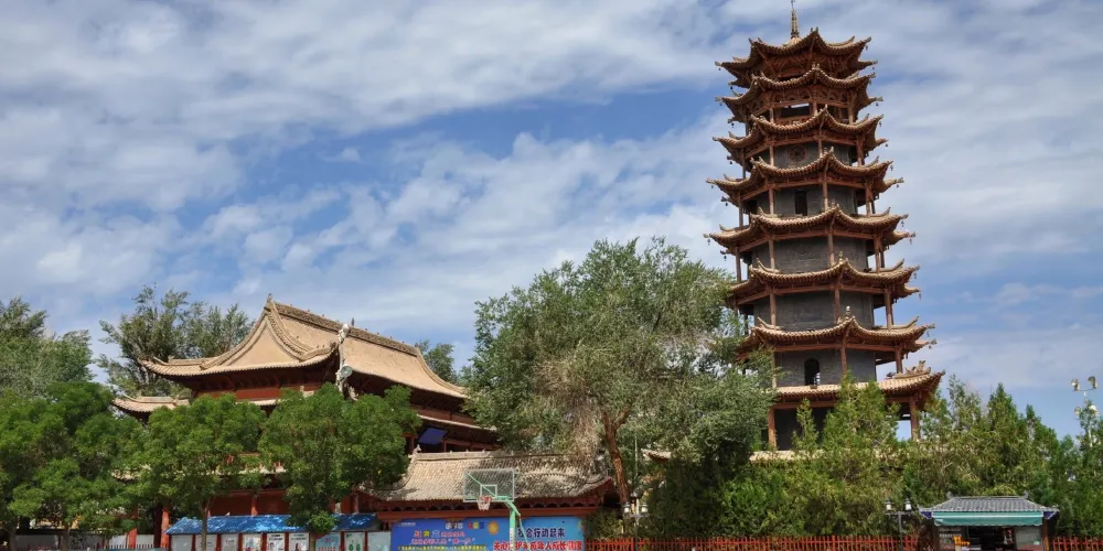 木塔寺原名萬壽寺,位於張掖市甘州區縣府街。寺內有一個木塔,是張掖市五行塔之一,塔高約32.8米,主體為木質結構,塔身內壁空心磚砌,每層都有門窗、樓板、迴廊和塔心。木塔寺內現闢為張掖市民俗博物館,登上塔頂,全市風光盡收眼底。