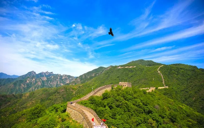 景區分為東西兩段遊覽路線:西段從14號敵樓延伸至22號敵樓,途經山勢陡峭的"牛犄角邊"和建築形態獨特的"箭扣"段;東段自6號敵樓至1號敵樓,大角樓瞭望台可觀賞週邊山巒景觀。建議遊客搭乘纜車抵達14號敵樓後,先向西遊覽地形起伏較大的西線,回程時沿東線緩步下山,途中可在8號敵樓體驗滑道工程。與部分熱門長城景區相比,慕田峪較好保留了城牆的歷史質感。景區內完善的遊覽設施為不同體力的遊客提供了多樣化的參觀選擇。