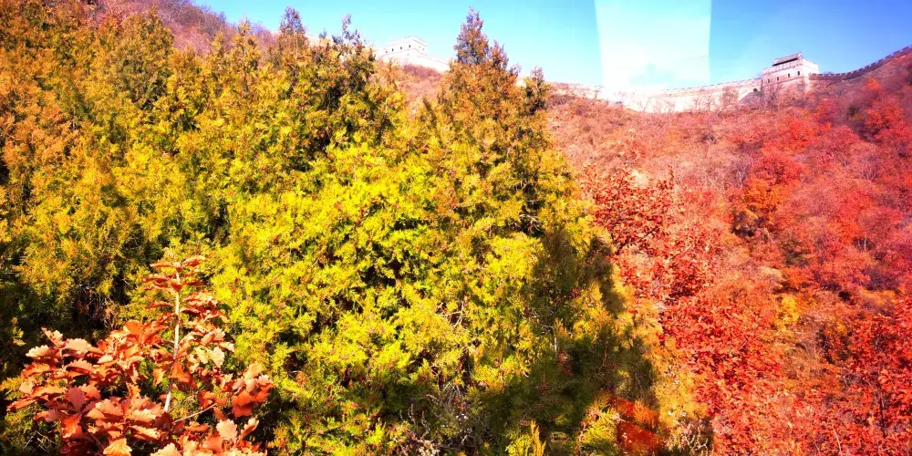 ▲慕田峪長城宛如一條石龍,蜿蜒於秋色斑斕的山巒之間,展現出一幅壯麗的歷史畫卷。
