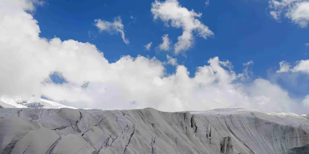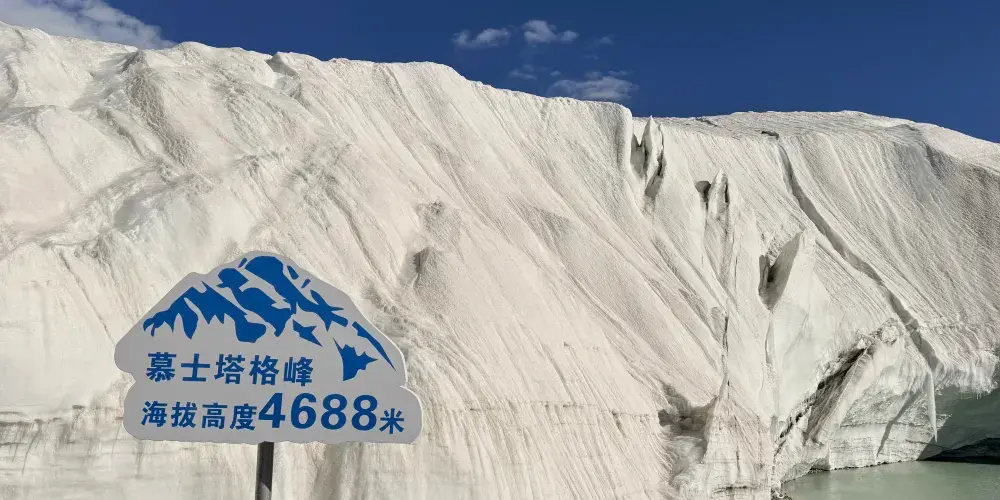 慕士塔格峯位於新疆阿克陶縣與塔什庫爾幹塔吉克自治縣交界處,海拔約七千五百米。慕士塔格峯,山頂終年白雪覆蓋,雲霧繚繞,十分神祕,每年吸引無數登山愛好者紛沓而至,想要征服慕它。慕士塔格峯頂皚皚白雪,猶如滿頭白髮,十餘條冰川鑲嵌在峯體下的峽谷中,猶如胸前飄動的銀鬚,故有“冰山之父”的美稱。在海拔4500米的地方,可領略冰川秀美的景色,如冰塔林、冰柱、冰洞等,堪稱奇觀,在這裏進行高山露營,是每個户外愛好者想要經歷的事情。慕士塔格峯巍峨莊嚴,純潔高雅,又因為有這樣美好的傳説,它便被塔吉克族視為純潔愛情的象徵。相傳,慕士塔格峯上住着一位冰山公主,她與住在對面的海拔8611米的喬格里峯上的雪山王子熱戀,兇惡的王后得知後很不高興,就用神棍劈開了這兩座相連的山峯,拆散了冰山公主和雪山王子這一對真摯相愛的戀人。冰山公主整天思念雪山王子,她的眼淚不停地湧出,形成了道道冰川。天晴時,白雪皚皚的山峯夾帶着伸向雪線下的道道冰川,宛若冰川公主飄逸的白裙和長袖。慕士塔格峯巍峨莊嚴,純潔高雅,又因為有這樣美好的傳説,它便被塔吉克族視為純潔愛情的象徵。