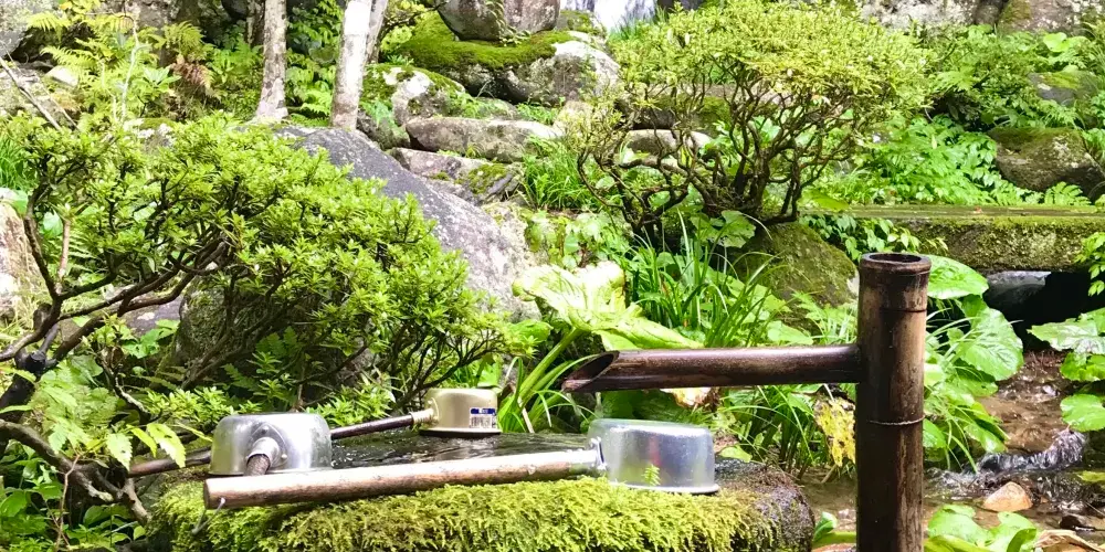 寺內的紅葉很漂亮,本殿的後面還有一條小河和瀑布,景色很美。