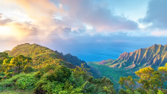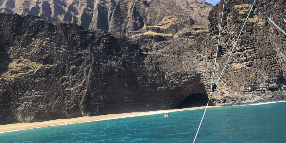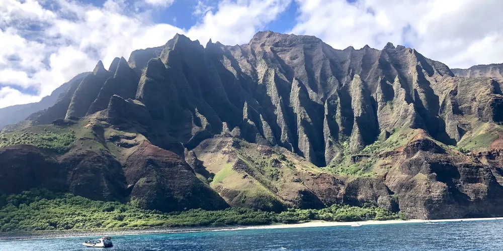 納帕利海岸是世界上最壯觀的自然景色之一,位於可愛島北部。曾經有一小群夏威夷人在這片綠崖傍海的環境裡生活了600年,卡拉勞小路是進入公園的唯一通道。沿著陡峭的山路向上爬行,就可以看到他們生活的遺迹,有古廟和民房的斷壁殘垣。如果要沿卡納卡皮埃海灘行走,就必須從國土資源部領取通行證。