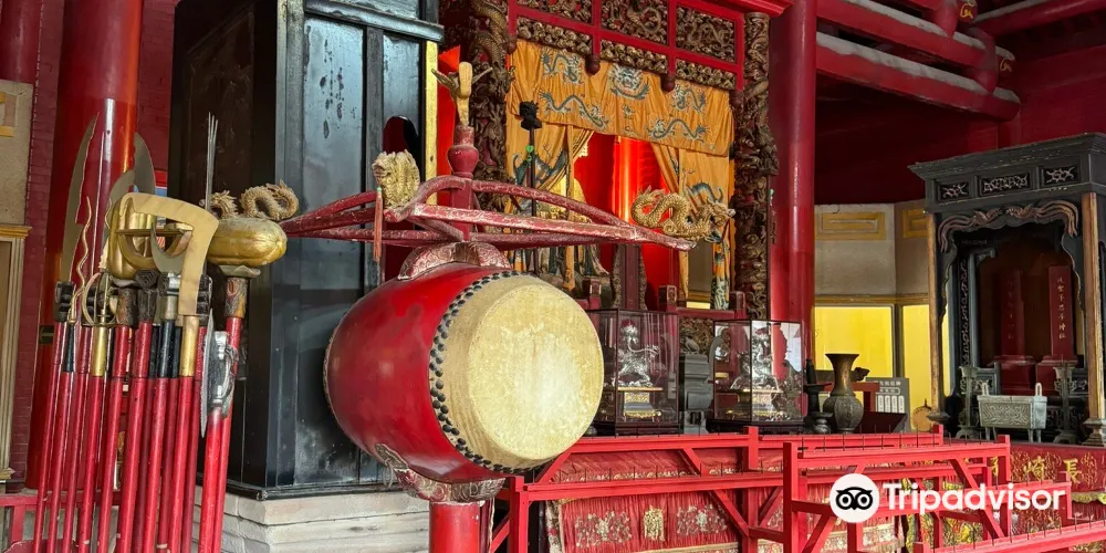 主殿均是黃琉璃瓦屋頂和漢白玉欄杆,富麗堂皇。大成殿內供奉有孔子塑像和4聖牌位,兩側有孔子弟子七十二賢人的大型石雕像,每座高1.8米左右,重2噸,完全是根據李公鱗的畫譜塑造的。大殿裡的全套祭器都是按照曲阜孔廟的複製的。以彰顯傳統美學的儀門和大成殿為代表廟宇中隨處可見中國的曆史、文化與傳統藝術的精粹。