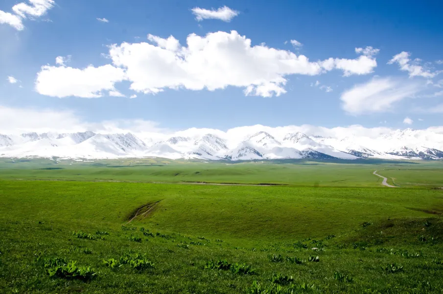 那拉提空中草原是新疆新源縣那拉提旅遊風景區的組成部分之一,從遠處看,一半是草原一半是雪山。在藍天白雲下,雪山,賽馬場,草原,山丘,溪流相互交融,宛如一幅美麗的風景畫。