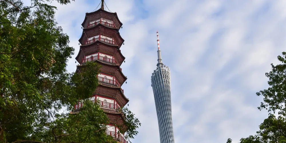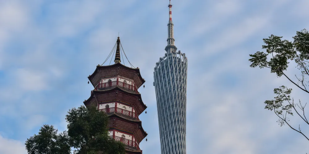 廣州塔是廣州地標,包括發射天線在內,塔高達600米,為國內有名的高塔之一,可自上而下俯瞰廣州美景。其頭尾相當,腰身玲瓏細長,又有「小蠻腰」的俗稱。這裡晚上會亮燈,即使不遊塔,也可來此拍攝外觀,用以留念。