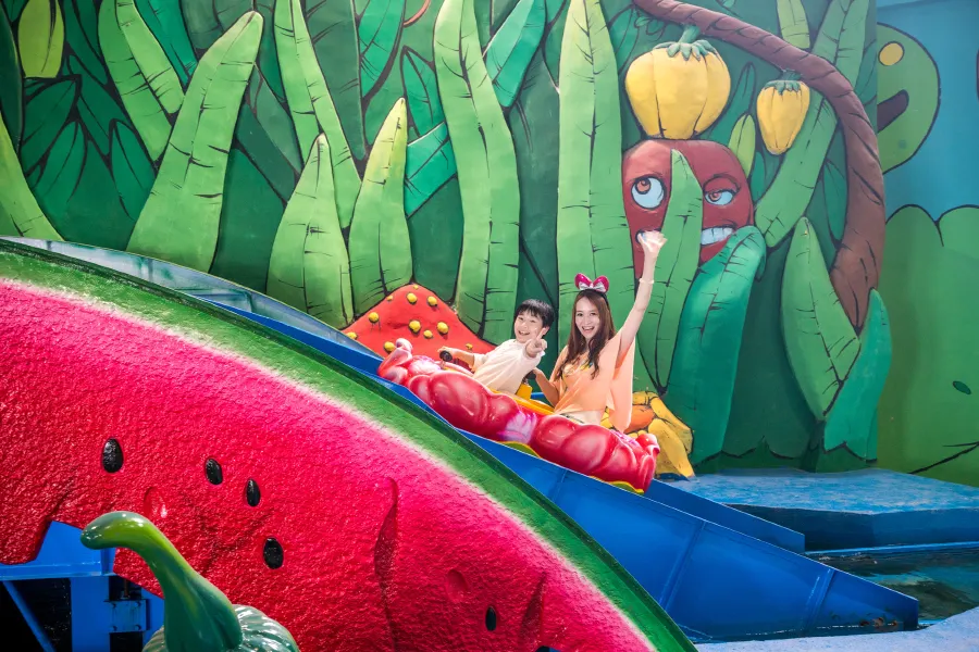 世外桃源主題區位於樂園的入口廣場,入口左側的七彩天地是小朋友喜愛的童話世界。推薦設施:彈跳樹屋、蟲蟲飛飛、泡泡大戰、瓢蟲風車、快樂蛙、極速賽車、花徑漫遊。