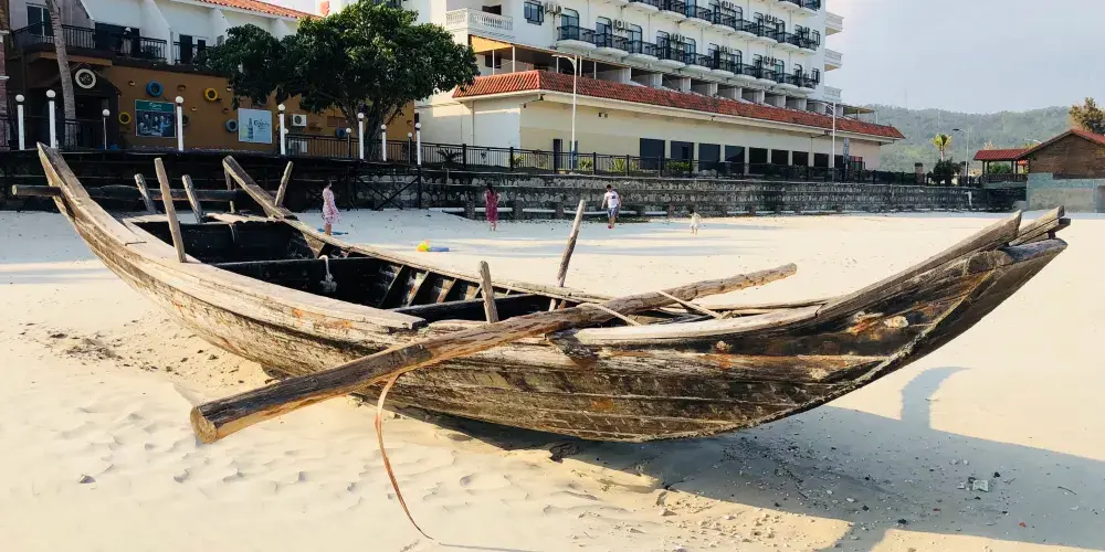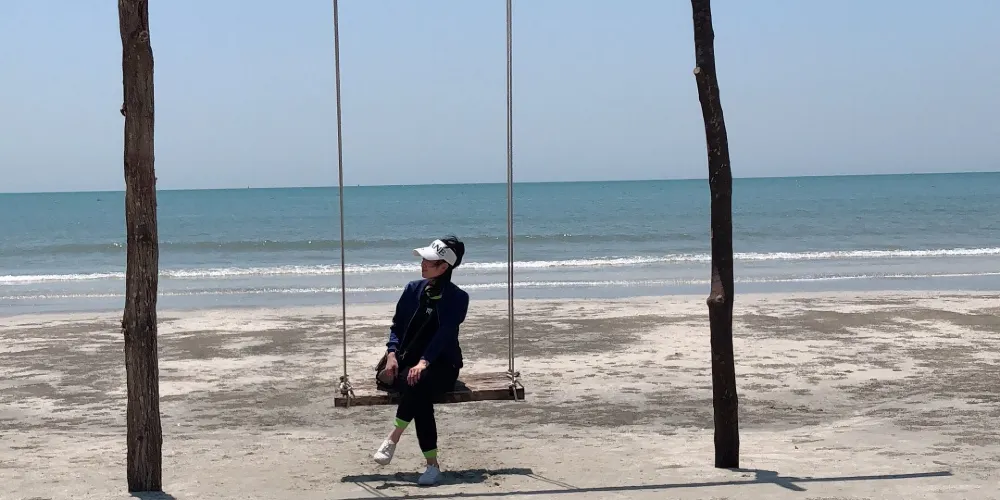6月中,天氣炎熱,已是旺季初期了。位於汕尾小漠鎮附近約6公里處的沙灘旁,自駕從鮜門鎮高速出口下來往左開約12公里便會到達目的地。鎮上沒有公交到海灘,出行衹能摩託或打車。這裏的沙灘旅遊仍未興旺,會比較冷清,附近衹有另一家度假酒店,如果喜歡寧靜的遊客,則是不錯的選擇。