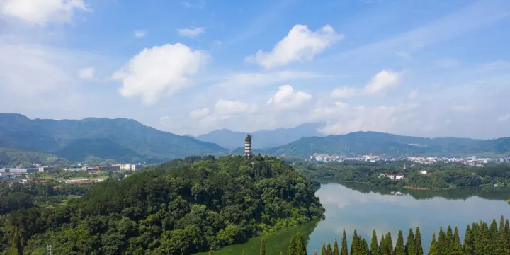 浙江建德南峯塔屹立在新安江、富春江、蘭江的匯合口,與古鎮梅城隔江相望。塔高57米,為七層八角空心磚塔,始建於三國,毀於隋,今存寶塔為明嘉靖年間所建。