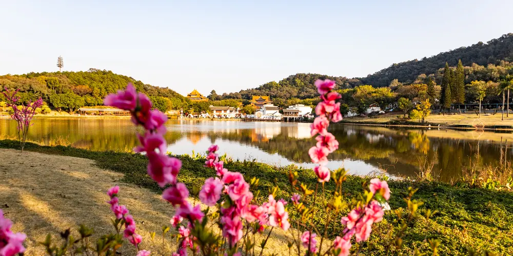 其中,金碧輝煌的天朝宮殿羣以中軸線對稱興建,規模宏偉,氣勢非凡;青磚黛瓦的江南水鄉薈萃了徽派和浙派建築的精髓,洋溢着濃郁的江南風情;舊港澳文化區既有復古懷舊味道,又瀰漫著摩登潮流元素。2020年春節景區在此傾力打造了“嶺南田園印象”新景點,金黃油菜花田鬱鬱葱葱,春色撩人,成了新晉網紅打卡點。