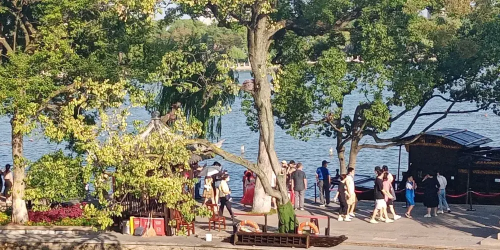南湖位於杭州餘杭城南,古時為滯洪圍築而成,因上游建了青山水庫,南湖的滯洪作用相對減小。近年在南湖東北角建了公園,考慮到滯洪作用,公園沒建亭台樓閣,衹有道路、石凳、草地和樹木。一年四季,南湖成了攝影人的外景地。