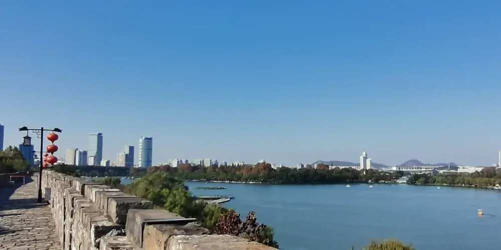 從南京火車站出來,南面就是環湖路,你可以環湖漫步,欣賞玄武湖景區的景觀。若是夏天來到這裡,可以看到大片荷花盛開,水面一片碧綠,尤為迷人。湖的南岸有一段明城牆(即明城垣史博物館所在的城牆),在此觀湖也別有一番風味。