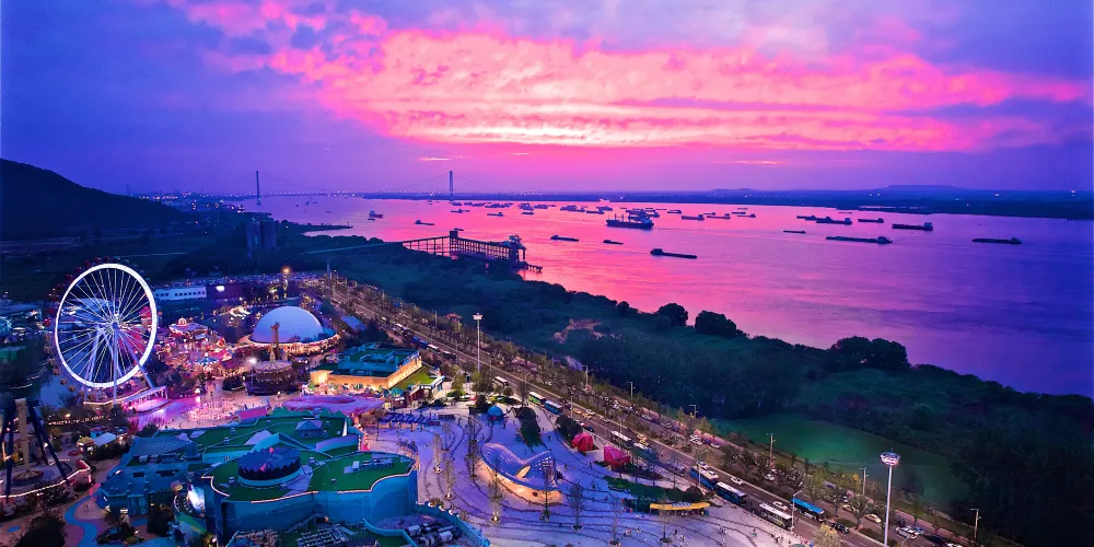 南京歡樂谷是歡樂谷在全國連鎖的第8站,選址在棲霞山東側,毗鄰長江,依山傍水,地理環境得天獨厚。 南京歡樂谷擁有歡樂時光、遺落要塞、甜品王國、黑鐵城、奇想海洋、魔眼森林六大園區,其中“甜品王國”和“奇想海洋”是與動畫IP餅乾警長及香港知名品牌B.Duck小黃鴨聯合打造的區域。此外,南京歡樂谷在樂園中融入硬核蒸汽朋克風,推出集復古情懷、機械美學、哥特建築等特色於一體的“黑鐵城”,為城市青年的假日休閑注入了更多的潮玩基因。 南京歡樂谷坐擁40餘台遊樂設備,亞洲首台末排反向座椅的飛翼過山車“掠食者”,眼前景色倒飛如流,腎上腺素急速狂飆。豪華雙層旋轉木馬、家庭迴旋過山車“時光飛車”、童樂天地“警長訓練營”……豐富多彩的遊樂設備,將讓全年齡層遊客樂享美好休閑。 南京歡樂谷的建成,不僅促使了“大南都”娛樂新地標快速成型,也進一步增強紫東旅遊資源的輻射能力,通過穩定的客源流量為南京發展規劃注入了一劑強心劑,在南京詮釋“繁華都市開心地”的真正要義。