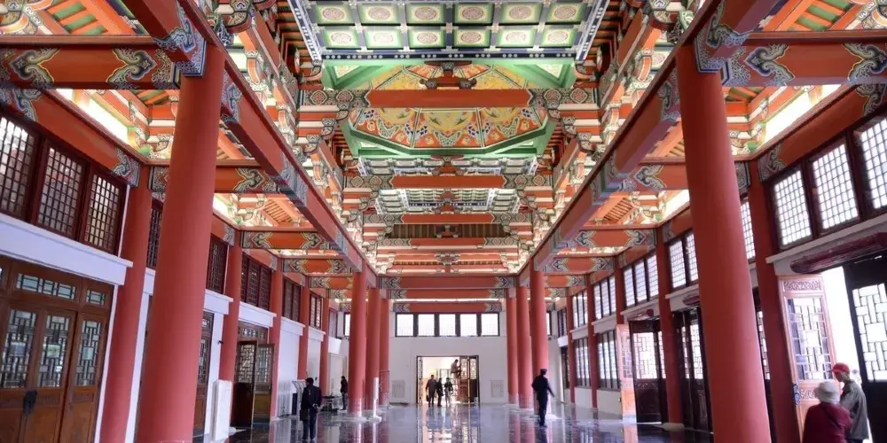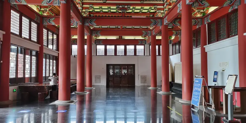 享殿也叫明孝陵殿,本來是供奉朱元璋和馬皇后神位之處,原殿已毀,尚存3層須彌座台基、6塊浮雕雲龍山水大陛石。現在這裡是史料陳列室。