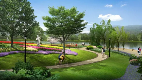 濱河公園綠廕庇日,涼爽怡然,公園裡花團錦簇,悠閑別緻,鬧中取靜,讓人心曠神怡。是市民休閑散步的好去處。