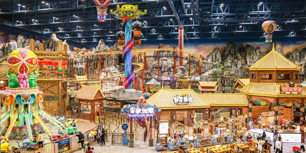 南寧萬達樂園位於五像新區,是以廣西民族特色為主題的大型室內樂園,有歡樂小寨區、青秀山水區等多個區域。歡樂小寨區建築風格為侗族特有的鼓樓風格,很有特色、青秀山水區則是以廣西的名山大川為靈感建造。既有濃郁的地方特色,也有民族風情,很是特別。