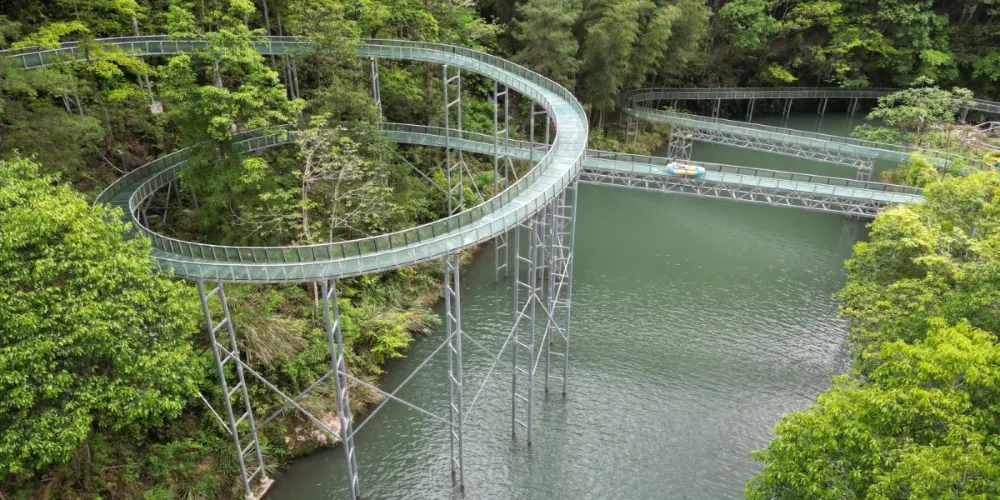 文興橋是泰順地區現存廊橋中環境較好的一座,保存完好。位於筱村鎮坑邊村,橫跨玉溪之上,系疊梁木拱廊橋,全橋長46.2米,寬5米,單孔凈跨29.6米,距水面高11.5米。該橋始建於輕鹹豐七年(1857年),1930年重修。文興橋的的結構非常奇特,左右不對稱的結構使得該橋在泰順眾多廊橋中倍受關注。1988年列為泰順縣第三批文物保護單位。相關傳説:傳説當年建造該橋時的把墨師傅是金華人,他帶了一名當地的青年為徒。造橋時徒弟怕自己負責的一端不牢固,而加用了幾籮鐵釘,因此該橋橋身向少鐵釘的方向傾斜。另一個傳説則是説當年建橋的時候,請來兩位師傅,分別從兩岸同時建造。兩位師傅對於造橋的方案各執己見,互不讓步。當造到中間時,才發現兩邊的高度不一樣,這時已來不及拆了重造,衹得傾斜着合龍。