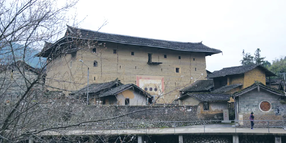 整個景區最壯觀的應該是五層樓高的和貴樓,它是較大的方形土樓,令人詫異的是它是建在沼澤地之上的。中庭有一塊下陷的鵝卵石地面,長期潮濕,人站在上面踩一踩就能感覺到地面的上下搖動。需要注意的是,如果你想要上樓,需要另外支付5元,並且這裡的商業氣息很濃重,各種小攤擠得滿滿當當。