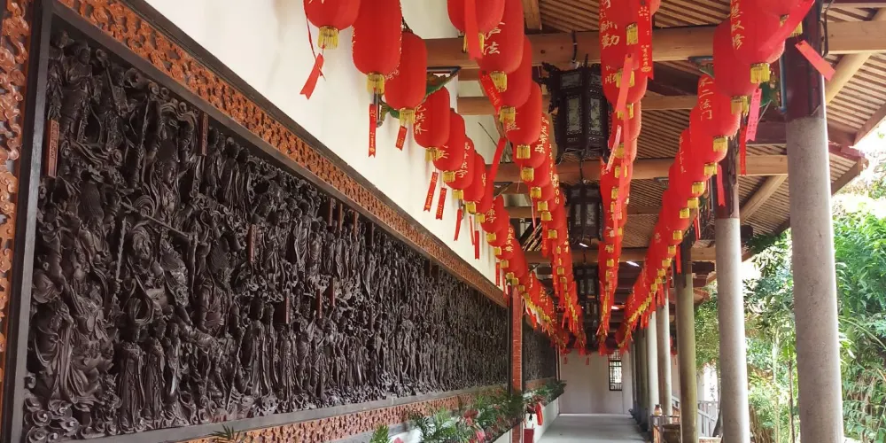 南山寺背靠丹霞山,北面向九龍江,原名“報劬崇福禪寺”,是唐開元年間(公元713~741年)太子太傅陳邕所建,至明朝才改稱南山寺。南山寺現存建築群為清末重修,具有唐代的風格。寺內的歷史古蹟“南山寺五寶”十分有名,它們分別是大銅鐘、天然石筍雕刻的佛像、血書滑緣經、光緒帝御賜藏經及緬甸玉佛。