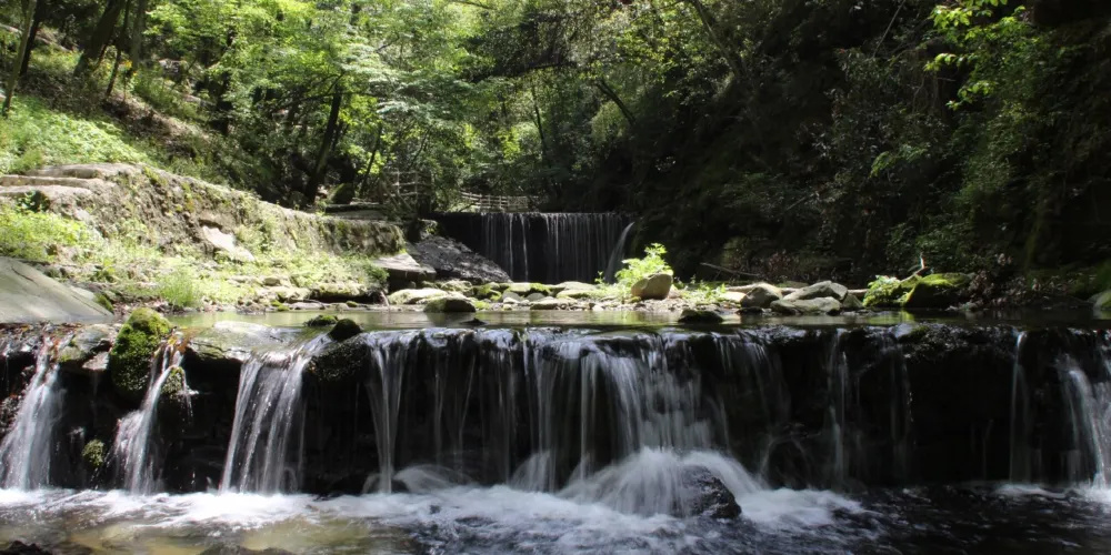 武當山南神道景區地處世界文化遺產、中國道教聖地武當山西南麓,坐落在中國民間藝術之鄉丹江口市官山鎮。它由中國漢族民歌第一村——呂家河和直通金頂的武當大峽谷兩大景區組成,其田畈遊客接待中心距金頂僅有5.7公里。蜿蜒曲折的九道河像一條玉帶,珍珠般串連着呂家河民歌村、紅三軍司令部舊址和新四軍西路軍遺址、二龍戲珠、斬龍崖、桃花洞、蘭花谷、天門關、天書谷、雨龍潭、寶珠託山、金蟾朝見、清徽宮等眾多景點。這裏峯巒雄奇、溪瀑清幽、棧橋奇瑰、民歌繁盛!素有“武當後花園”的美譽。