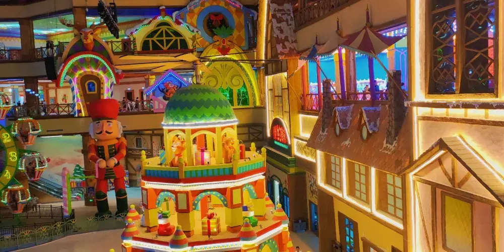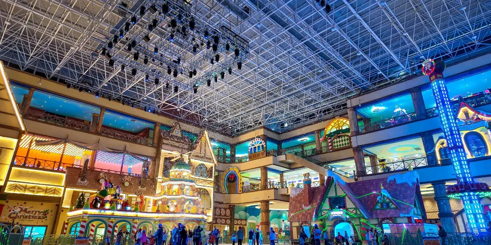 南通森迪冰雪海洋樂園位於南通森迪旅遊度假區內,是華東地區特色鮮明的室內綜合性冰雪海洋主題樂園。南通森迪冰雪海洋樂園將冰湖景觀、冰雪娛樂項目、遊樂設備、親子樂園、海洋生物展示以及專業的冰雪海洋科普知識相融合,為遊客帶來全方位、沉浸式的遊玩體驗。南通森迪冰雪海洋樂園內劃分冰雪娛樂區和遊樂休閒區兩大區域。冰雪娛樂區以真冰真雪打造,設有冰川世界、雪地轉轉、滑雪場、童夢雪鄉和冰滑道這六大特色項目。遊樂休閒區一層中心有著超2000平米的真冰湖面,還配備多組親子遊樂設備、特色親子互動樂園、主題餐廳、兩個主題扮裝商店,同時還有精彩的冰上演藝、海洋科普等特色項目,讓遊客盡情享受歡樂時光。