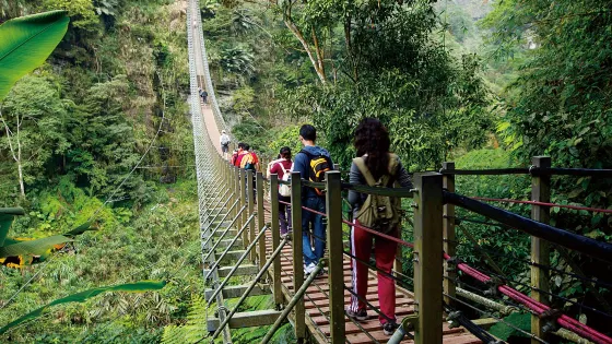 5 分1 則評價距離市中心 距離市中心40.8公里竹山大鞍山區因加走寮溪湍急切割堅硬砂巖層,造就山勢雄偉的峽谷流水,南投縣在此興建梯子吊橋橫跨縱深百米的太極峽谷,讓您得以居高臨下盡在橋上,放眼所及盡是奇巖峭壁、瀑布奔流的峽谷風光,因而有西部太魯閣美譽!全台一座階梯式索橋的吊橋,全長136公尺,共有208階,兩端落差高達20公尺,位於梯子嶺上方又有階梯,經命名活動給了它「梯子吊橋」名稱,但人們多愛叫它「天梯」,攬壯闊奇景,造就美麗的山中傳奇。