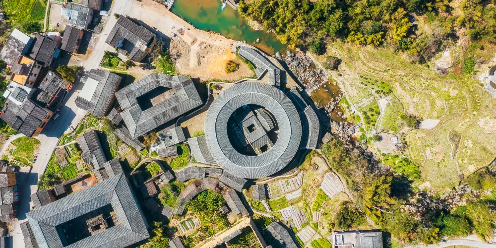 初溪土樓古村落景區繫世界文化遺產地,是福建土樓中氣勢磅礴的土樓羣,擁有5座圓樓和31座方樓。景區不僅規模宏大,還具備了“集中、美麗、古老、特殊、知名”的特點,是文化休閑體驗的旅遊目的地。全國重點文物保護單位“集慶樓”是福建土樓中歷史悠久、結構特殊的圓土樓。全樓建築時沒用一枚鐵釘,72道樓梯與厚度近2米的生土牆共同經歷了600多年的風霜雪雨。地點:福建省龍巖市永定區下洋鎮初溪村。