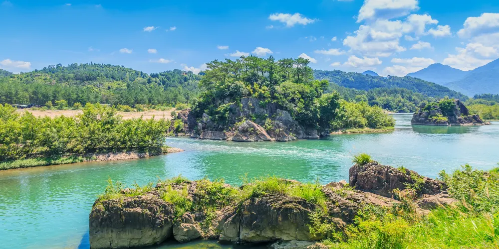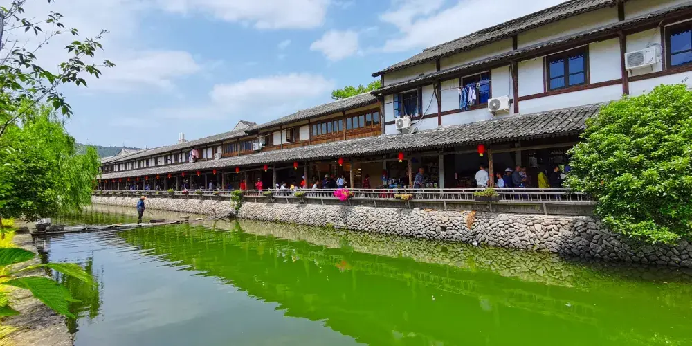 巖頭古村位於楠溪江中游西畔,介於蒼坡和芙蓉之間,因地處芙蓉三岩之首,故名巖頭。巖頭古村的正門是北門,稱“仁道門”,東門叫“獻義門”。此外,村落東緣的蓄水堤上,建有該村初具規模的商業街:麗水街,麗水街南側是塔湖廟風景區。巖頭村中央街南端還有金永樸創建的水亭祠,都各具看點。