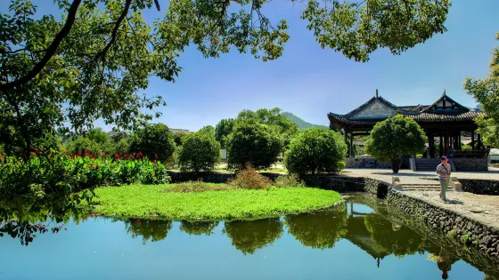 巖頭古村位於楠溪江中游西畔,介於蒼坡和芙蓉之間,因地處芙蓉三岩之首,故名巖頭。巖頭古村的正門是北門,稱“仁道門”,東門叫“獻義門”。此外,村落東緣的蓄水堤上,建有該村初具規模的商業街:麗水街,麗水街南側是塔湖廟風景區。巖頭村中央街南端還有金永樸創建的水亭祠,都各具看點。