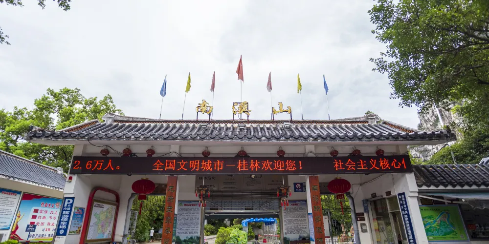 南溪山景區位於桂林市象山區中山南路2號,因南溪縈繞而得此名。景區內的南溪山上有白龍洞等多個岩洞,兩峰之間有龍脊亭,是登高觀賞風光的好地方。南溪山的外形像一個馬鞍,其凹處就是龍脊坳,在龍脊坳的一處山腰有劉仙岩,洞內遍布著宋明以來的石刻。