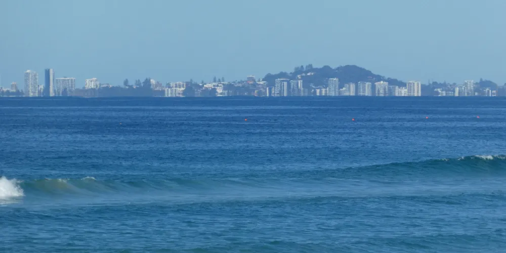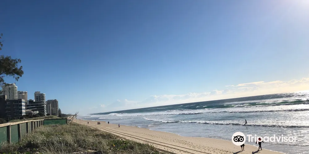澳洲最著名的海灘之一,吸引全球各地的衝浪愛好者前來。黃金海岸毗鄰太平洋,擁有75公里長的海灘,是一片廣闊的沙質海岸。這裡的海岸線筆直寬闊,岸邊水淺浪大,非常適合進行衝浪等各種水上運動。其中連綿不斷的海灘長達42公里。轉角懸崖處有一片礁石,層層浪花從礁石懸崖奔湧而來,浪高達2至3米。若遇海上風暴,浪濤轟鳴,掀起洶湧波瀾,其壯觀景象令人驚嘆。
