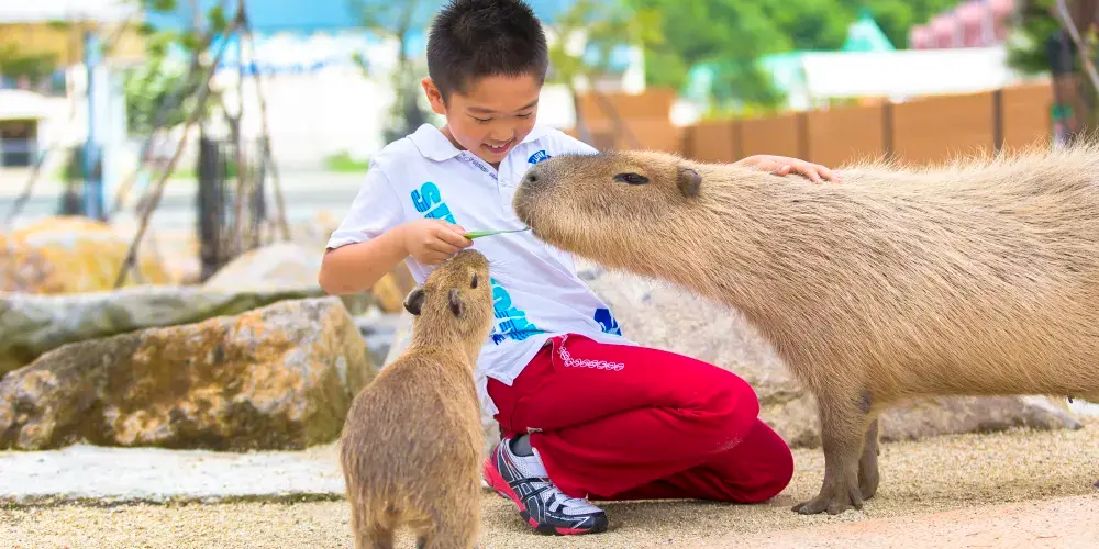 在園內飼養着水豚、小熊貓、貓鼬、企鵝等可愛的動物們。園內佔地約為2個北京鳥巢大,在寬廣的牧場養育了500隻以上的動物。【水豚森林】您可以在這邊跟可愛的水豚玩耍,與水豚變成朋友之後,水豚的毛髮會變得柔順讓您觸摸。水豚在水中游泳或是泡温泉的樣子非常可愛。可愛的水豚等着您的到訪。【新西蘭農場秀】在王國農場的中心-農場廣場裏可以看到新西蘭的牧羊犬和羊羣的表演,狗兒聽到笛聲後,控制羊羣們的方向。工作中狗兒的活力敏捷與優美的動作讓人印象深刻。【羊駝山丘】可愛的羊駝在羊駝山丘上愉快玩耍的模樣,忍不住讓人靠近。您可以觸摸羊駝並體驗餵食。