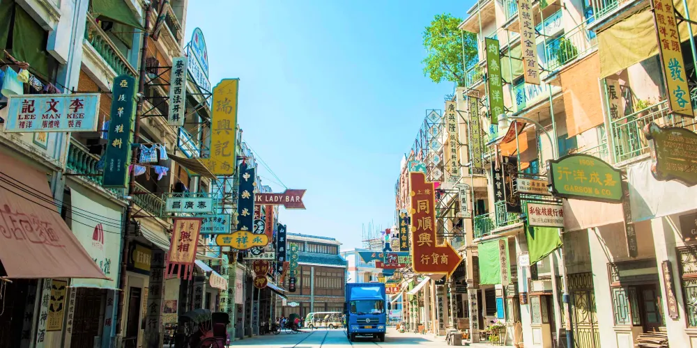 西樵山國藝影視城有明清皇宮、舊時民居,以及其它不同時期的建築風情,漫步其中,感覺好像穿越到百年前。廣州街、上海街還原了舊時代的歷史面貌,香港街有眾多TVB劇都來此取過景,江南水鄉和清明上河圖展示著傳統文化的優雅。景區裡可以欣賞到各種精彩的表演,上海街的百樂門或明清皇宮都有表演。