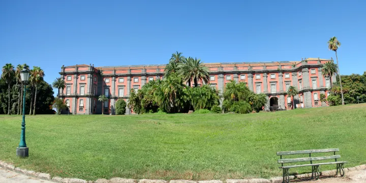 卡波迪蒙特國家博物館位於卡波迪蒙特宮中。卡波迪蒙特宮一個宏偉的波旁宮殿,位於山上的關係,可以俯瞰全城。王宮建於1738年,是查爾斯的新王宮,近一個世紀才完工。宮殿掩映在繁茂林地裏,淡紅橙色和灰色相間,十分搶眼。經過數十年的修復,加建了卡波迪蒙特畫廊博物館。博物館內部非常典雅,裏面收藏了很多法爾內塞以及波旁家族的畫,還有大量包括貝里尼、波提切利、卡拉瓦喬、柯雷吉歐、馬薩喬和提香等意大利畫家的作品,其中有名的油畫是馬薩喬的《十架受苦》。博物館內還有其它一些名作,如貝里尼的《耶穌顯容》和提香的9幅油畫,基本都為彩繪,一層跟二層有許多關於宗教的繪畫以及少許風景畫,還有展出一些製作十分精美的瓷器。
