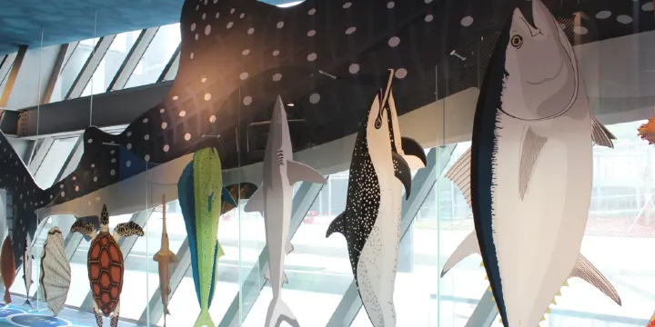 海科館8K海洋劇場,劇場使用全台第一臺高亮度8K雷射投影機與高擬真的音響設備,提供遊客身歷其境的臨場感,體驗與感受海洋的魅力與震撼,帶給遊客一個未有的海洋奇妙經驗,進而引發遊客對於海洋世界奧妙的好奇心。