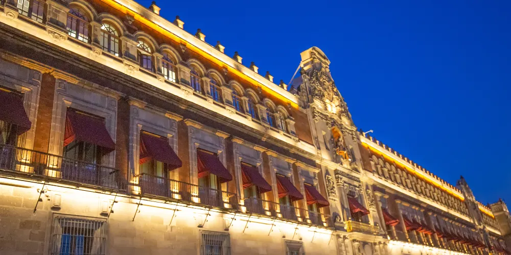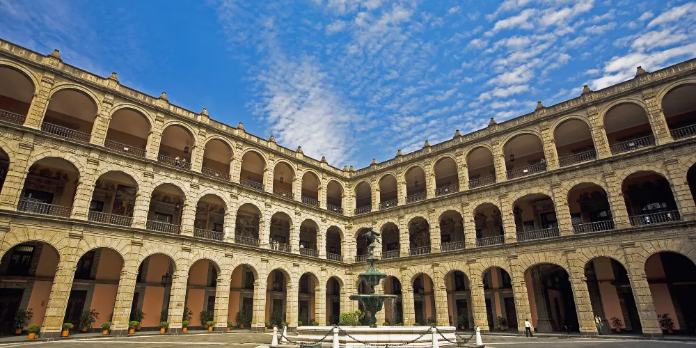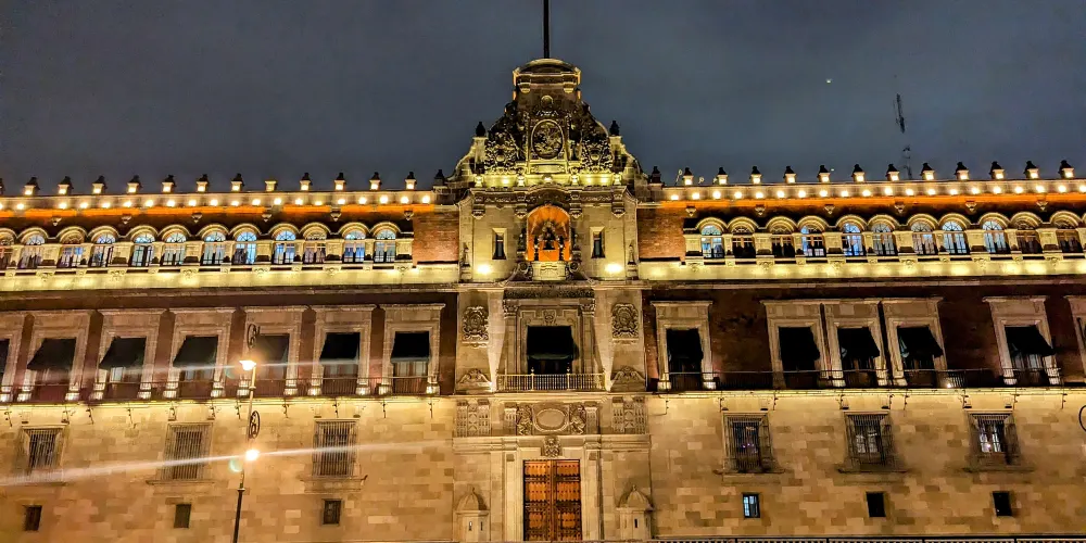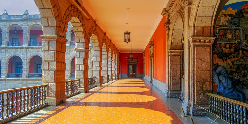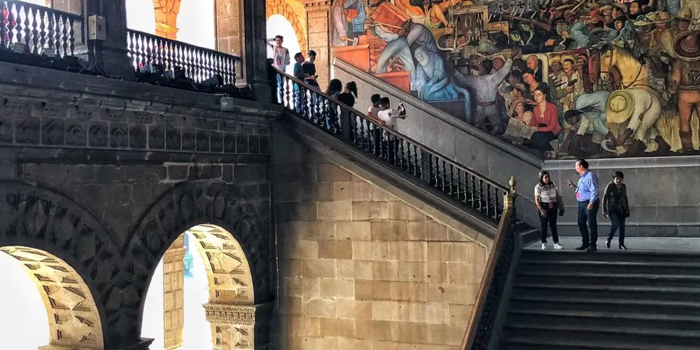 國家宮殿是總統辦公的地方,它飽經滄桑,是墨西哥歷史上很多重要事件的無聲見證。國家宮殿有數十個庭院,除總統辦公處外,還設有一家博物館。其中很吸引遊客的是由墨西哥壁畫家狄亞哥里維拉創作的巨幅歷史壁畫,壁畫滿佈國家宮殿中央庭院的四壁,色彩絢麗張揚,描述了墨西哥的整個歷史發展軌跡。