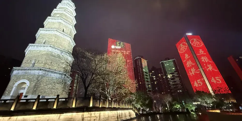 天然塔位於宜昌市沿江大道,相傳為晉代郭璞所建。此塔高約42米,上有八大金剛的石雕,石額上刻有天然塔字樣,邊框有二龍戲珠及雲紋圖案。塔內有145級石梯盤旋至頂,登臨塔頂,可以俯瞰整個宜昌港,吸引了無數遊客前來觀光。