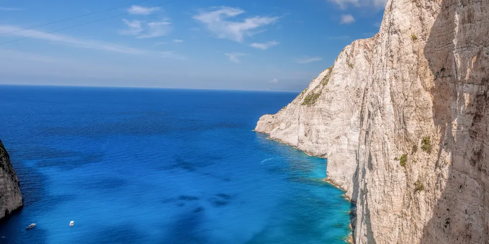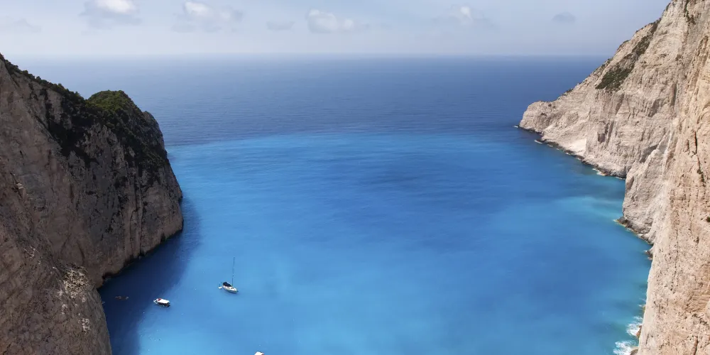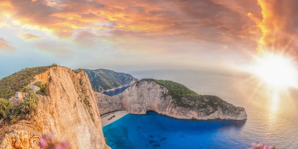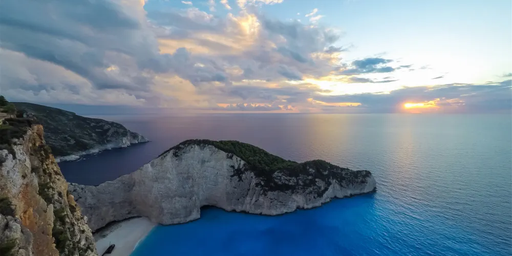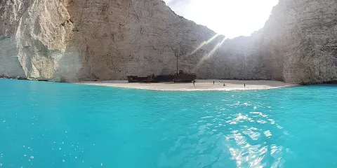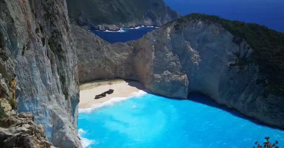 沉船灣是希臘扎金索斯著名的景點,1983年,走私船Panagiotis號在運送香煙時失事擱淺於此,該地自此得名“沉船灣”。陡峭的懸崖、清澈蔚藍的海水、潔白的沙灘間,橫著一條鏽跡斑斑的老鐵船,為遊客帶來了視覺上的極大震撼。