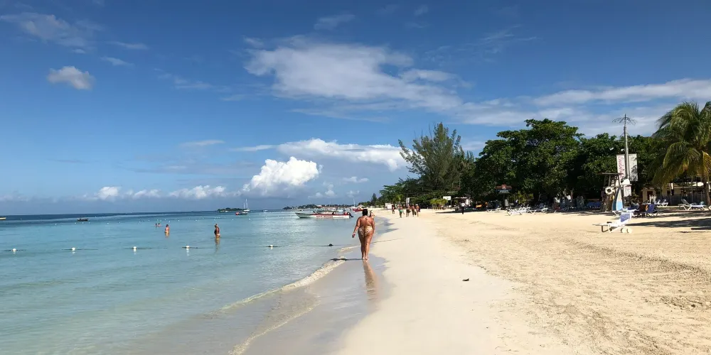 七英里海灘位於牙買加內格里爾,是一處景色迷人的海灘。這裏不僅擁有一望無際的白色沙灘,還有一排排高大的棕櫚樹,非常美麗,是攝影及文藝愛好者的天堂。