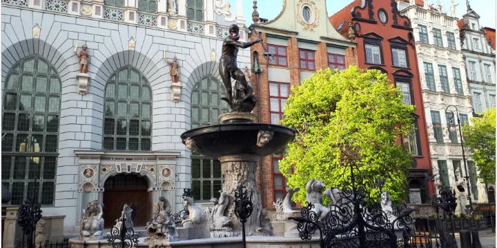 海神噴泉是波蘭格但斯克具有標誌性的歷史地標之一,位於舊城區中心的長廣場(Długi Targ)。其歷史可追溯至17世紀初期,由德國雕塑家亞伯拉罕范登布洛克設計,1613年落成。噴泉主體為青銅鑄造的海神涅普頓雕像,他手持三叉戟立於貝殼戰車之上,象徵格但斯克作為波羅的海貿易港口的繁榮與海洋文化的深厚聯繫。