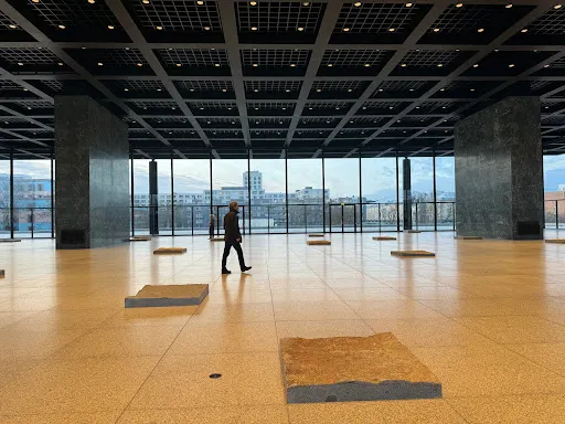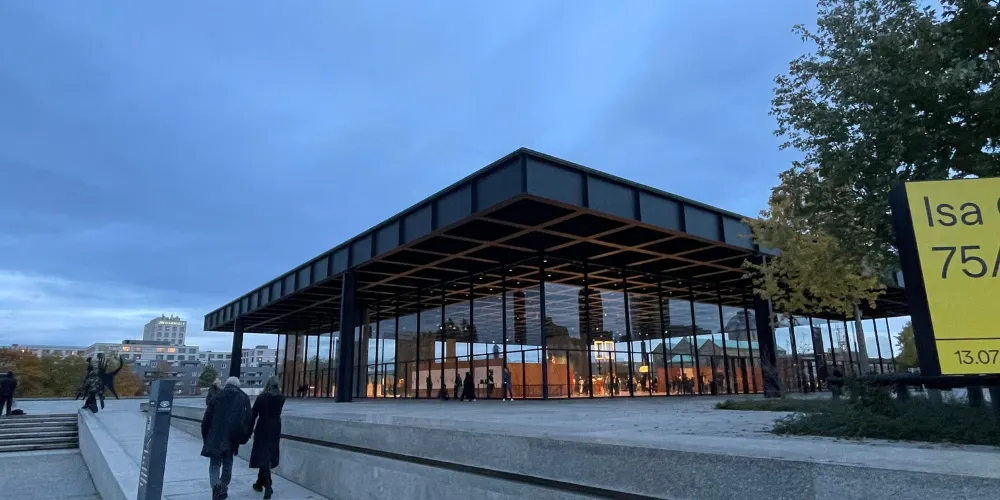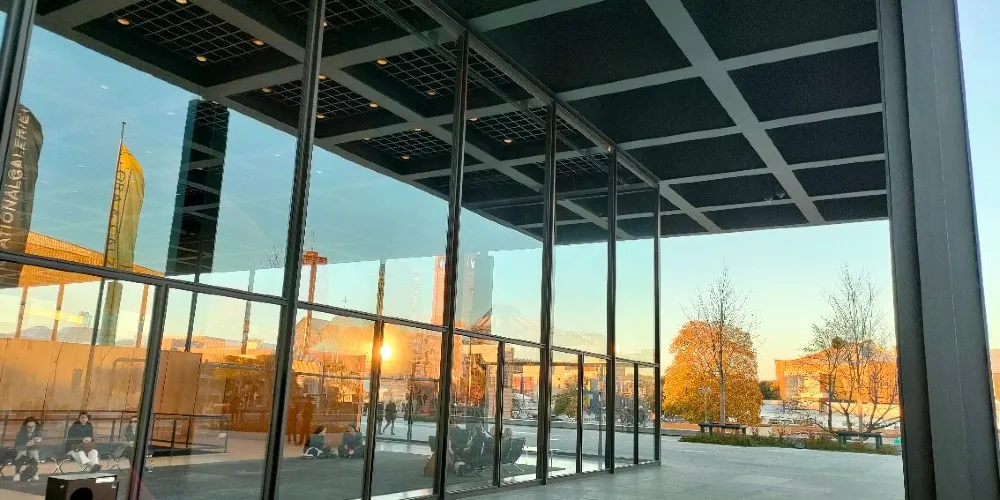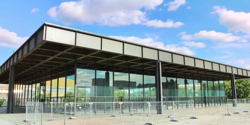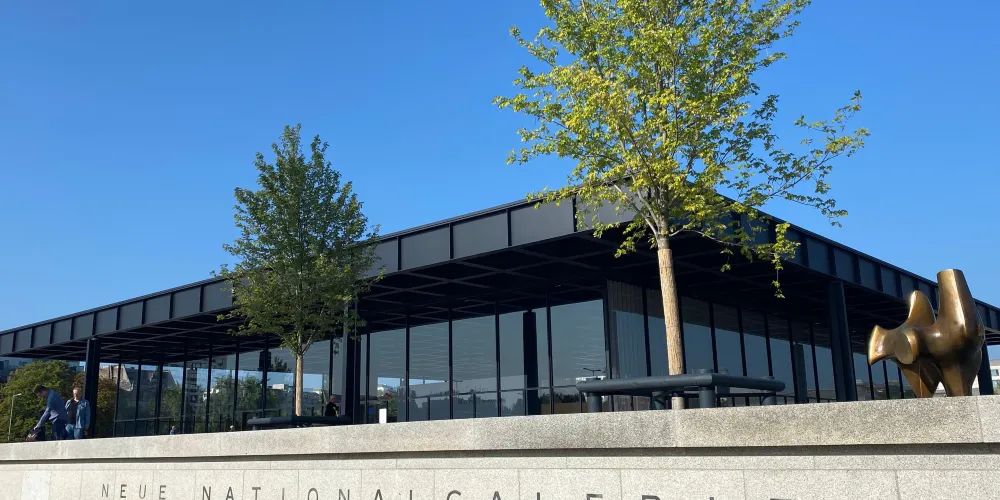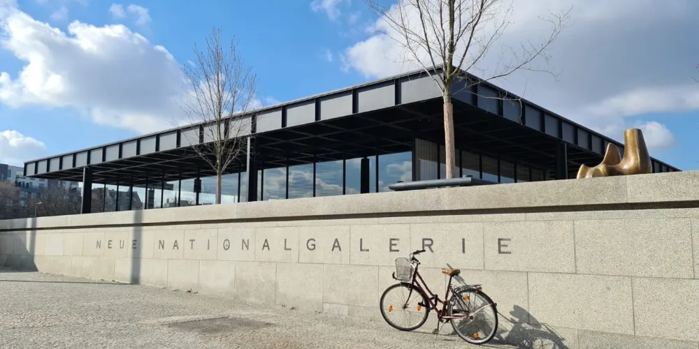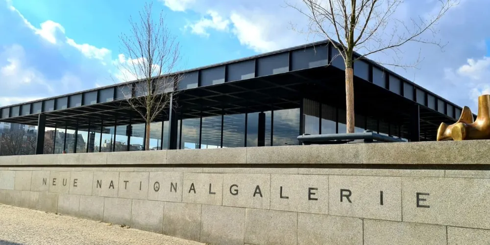柏林新國家美術館是現代建築的先驅密斯·凡·德羅所建,美術館本身是一件鋼與玻璃的雕塑,裏面的陳列品有從印象派到德國表現主義、現實主義、立體主義的繪畫作品,再到亨利·摩爾等人的大型雕塑。在它的對面,柏林愛樂音樂廳金黃色的牆面和曲折和造型有如樂海中的揚起的風帆。