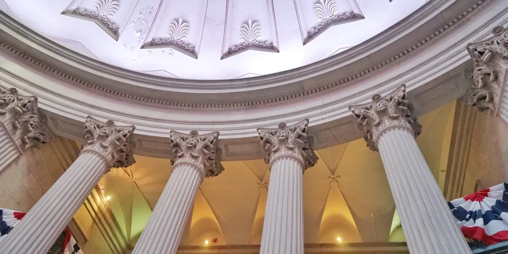 • 令人印象深刻的雕像:它描繪了一個女性人物,一手拿著火炬,代表啟蒙,一手拿著牌匾,象徵法律。