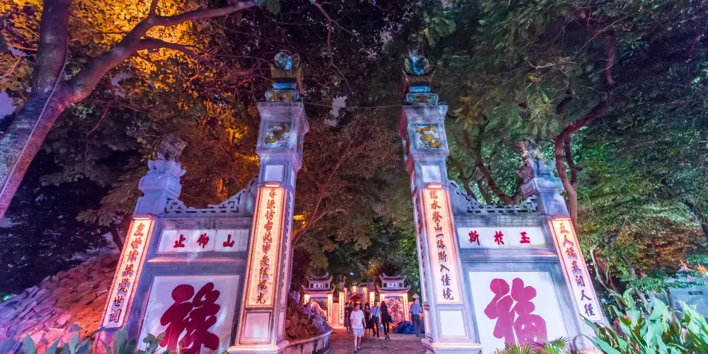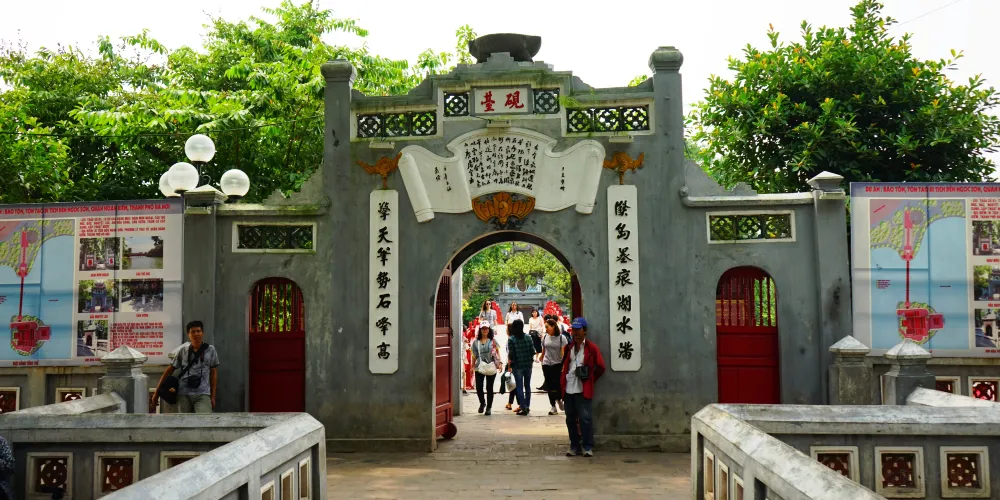 整個寺院結構精緻,小巧玲瓏,與還劍湖景色相輝映,猶如蓬萊之景。玉山島15世紀時是黎朝皇帝的釣魚台。18世紀時在島上建了關帝廟,後擴建為玉山祠,現在裡面還供奉著關帝以及民族英雄。