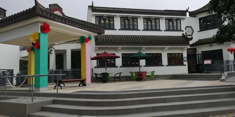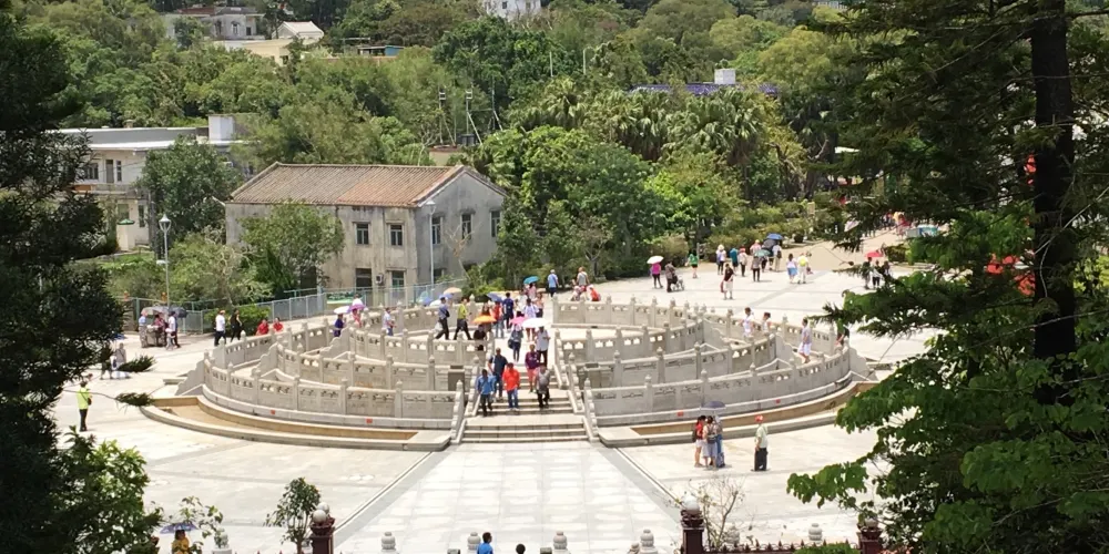 △ 位於香港大嶼山的昂坪市集佔地1.5公頃,毗鄰昂坪纜車站、天壇大佛及寶蓮禪寺,市集內富有中國文化特色的建築及園林設計與昂坪獨有的大自然景緻互相 融合。 提供多采多姿的消閒、餐飲及購物體驗,是香港自由行的必到景點。