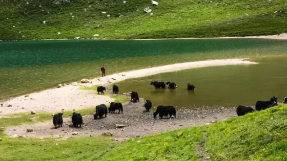 下文措位於年保玉則景區內。景區裏還有上文措。整個下文措湖,湖水清澈,兩岸風景秀麗。是觀湖,觀景的好地方。