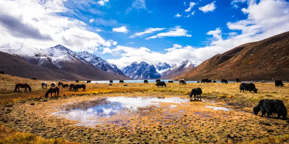 年保玉則位於青海果洛州久治縣,是果洛藏族傳說中的發源處,也是當地人心中的一座神山。年保玉則山下有多個湖泊,每到夏季時還有開滿鮮花的五色草地,雪山、湖泊、花海映襯的風景絕美,是很多攝影愛好者心目中的天堂,來此觀光拍照十分不錯。