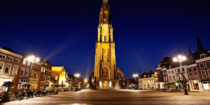 代爾夫特新教堂位於代爾夫特中心廣場市政廳對面,建於1381年。教堂的塔樓是荷蘭第二高的教堂塔樓,是代爾夫特標誌性建築。整個教堂現在是荷蘭的皇家墓地,從荷蘭國父威廉親王開始,荷蘭王室都埋葬於此。登上教堂眺望遠處,整個城市美景盡收眼底。