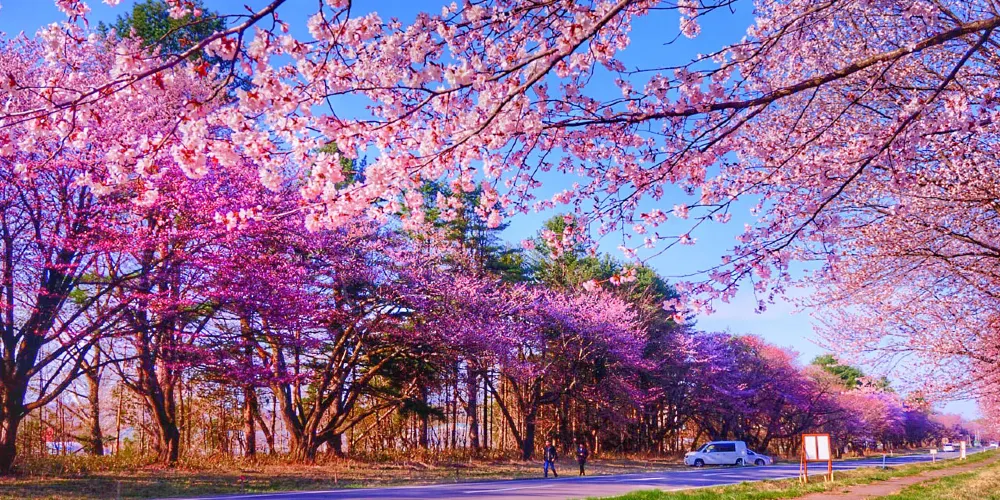 這是一條在新日高町靜內地區的道路,道路兩旁種植了很多櫻花樹,櫻花盛開的時候場面特別浩大,就像是走在隧道里一樣。