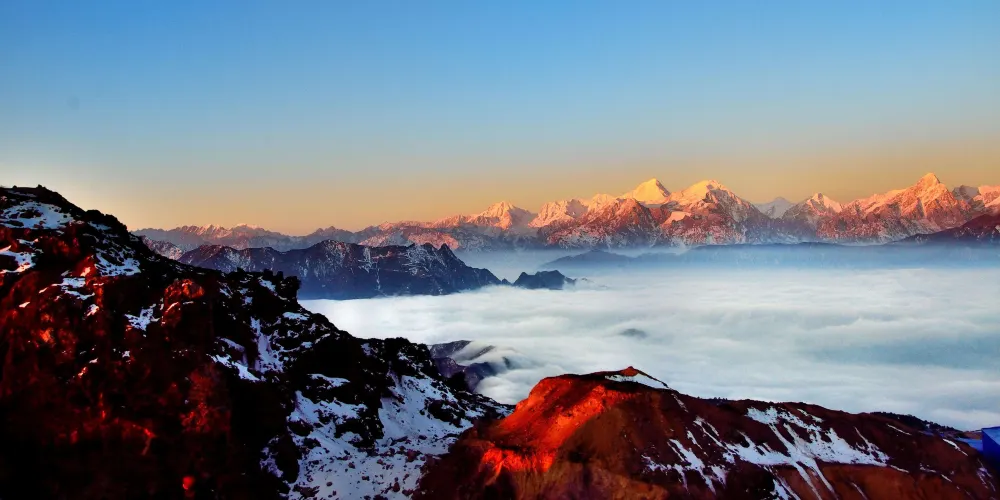 拍攝時間:一年四季景觀各有不同,杜鵑花、報春花、格桑花等不同花卉從春天開到夏天,夏季清涼避暑、觀雲海變換,秋賞紅葉,冬耍冰雪、觀霧凇,每年10月至第二年5月是登牛背山的推薦時間。且山頂空氣乾燥,天氣晴好較多,是牛背山一年中觀看貢嘎雪山、壯麗雲海的推薦時間段。