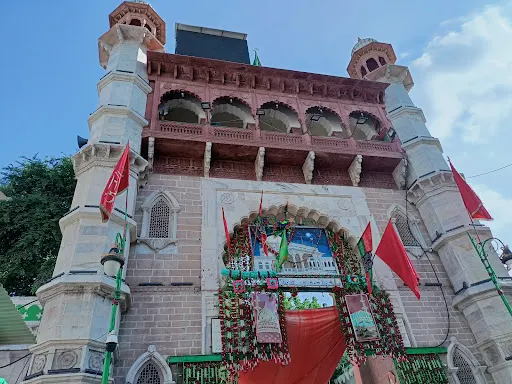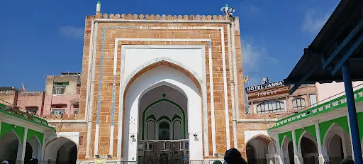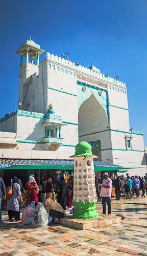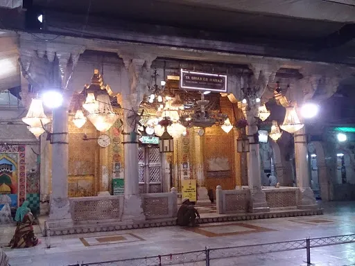 沙賈汗清真寺位於穆因丁·奇什蒂之墓旁邊,由白色大理石建成。清真寺由莫卧兒王朝的皇帝沙賈汗在1647年下令建造。清真寺由前有兩部分組成,前面是一座由數量、甬道、噴泉、花圃和草坪構成的優雅園林,後面則是宏偉寬闊的祈禱廣場和別具匠心的經房。清真寺的拱門上裝飾着藤蔓花紋、各色花卉和幾何圖案,並刻有《古蘭經》經文。