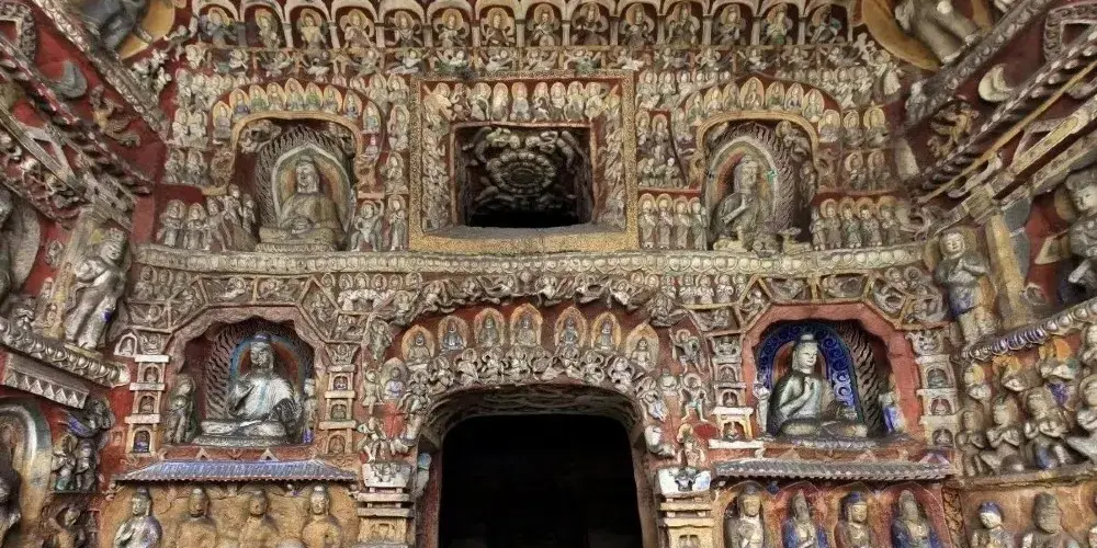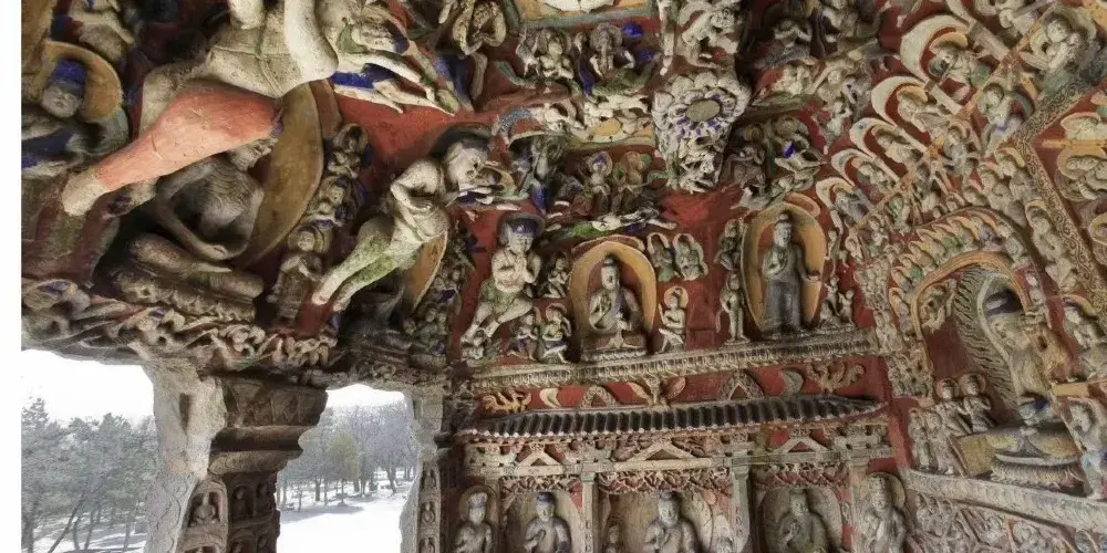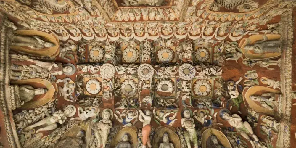 大同萬佛洞 (第十五窟)是雲岡石窟的典型千佛像窟,以數量眾多的佛像著稱,現存約8900尊造像,因此也被稱為「萬佛洞」。千佛的開鑿流行於北魏,源自於「三劫三世千佛」用語。每一劫世中各有一千人成佛教化眾生,這就是「三劫三世千佛」。十方諸佛是無數無量的意思, 「千佛’、「萬佛」指數量很多,不一定是「一千」或「一萬」。「萬佛洞」內雕鑿大同小異,佛像造型各異排列整齊,遍布石窟里外四周。
